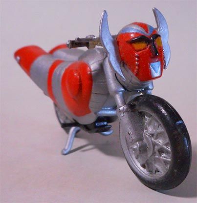 電人ザボーガー (オートバイ形態マシーン・ザボーガー) 全高2メートル 重量500キロ 耐荷重量35トン 出力5000馬力 動力源・ダイモニウム マシーン・ザボーガー 内臓メカ・ヘリキャット、マウスカー、シーシャーク |